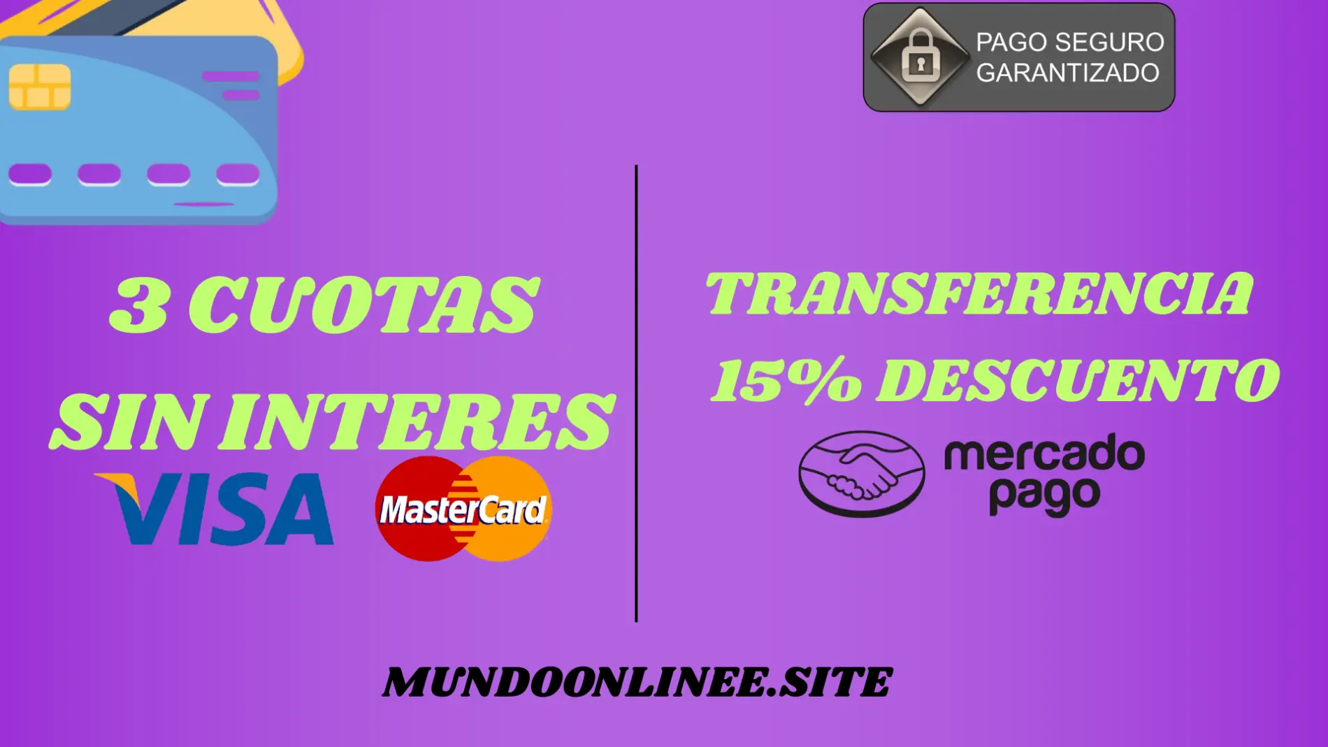 ¿Elegí como queres pagar! En Mundo Online pensamos en tu comodidad por eso tenemos 3 cuotas sin interés con todas las tarjetas y 15% de descuento pagando con Mercado Pago. Porqué queremos que disfrutes de tus productos favoritos de la manera más fácil, rápida y accesible.