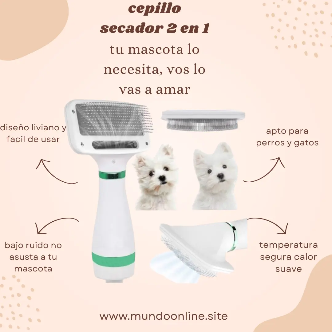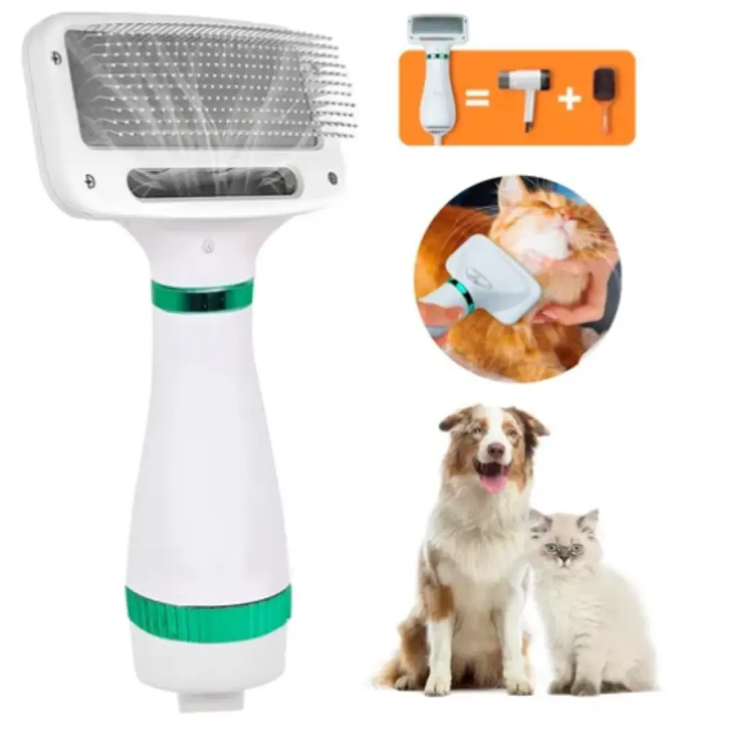 Con el cepillo 2 en 1, el secado deja de ser una lucha y se convierte en un momento practico y feliz. Sin ruidos que lo asusten y tu mejor amigo cómodo y feliz después de cada baño.